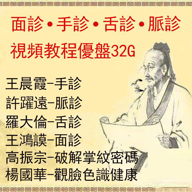 • 面診舌診脈診手診技術U盤中醫診斷技術入門視頻教程診脈教學自學視頻教程32G NT$1380 詳情