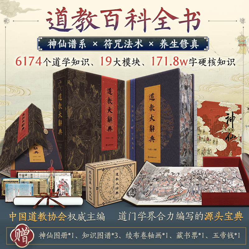 【刷邊特裝盒函版】道教大辭典 吉宏忠道教百科全書 吸收百年道教研究成果 二十年匠心打造的道教文化結晶 道教歷史文化現狀大型專科辭典 (附贈 神仙圖冊+知識圖譜+綾布捲軸畫+藏書票)
