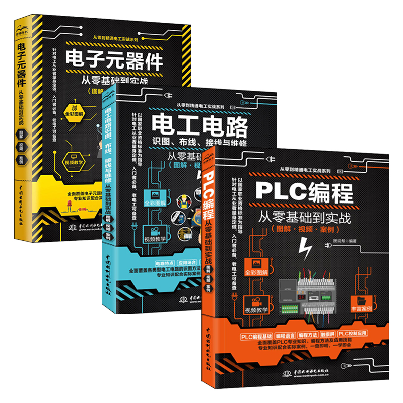 電子元器件+電工電路識圖佈線接線與維修+PLC編程從零基礎到實戰 彩圖大全3冊