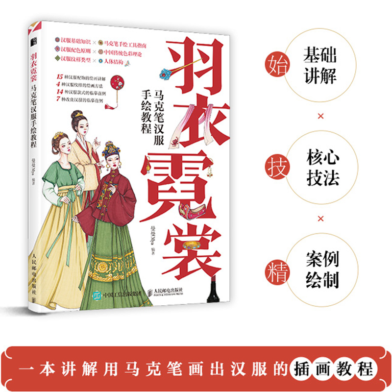 漢服款式設計與表現+漢族傳統服飾圖案經典+馬克筆漢服手繪教程3冊