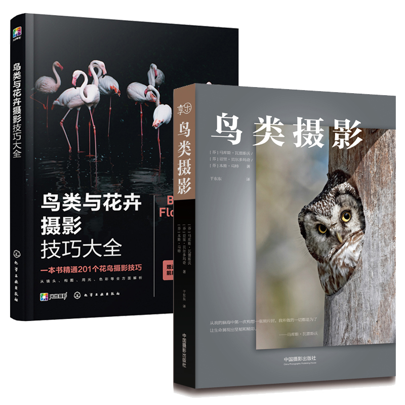 鳥類攝影+鳥類與花卉攝影技巧大全(共2冊) 201個花鳥攝影技巧,器材選擇、相機設置、構圖用光、實拍技巧、後期處理大全