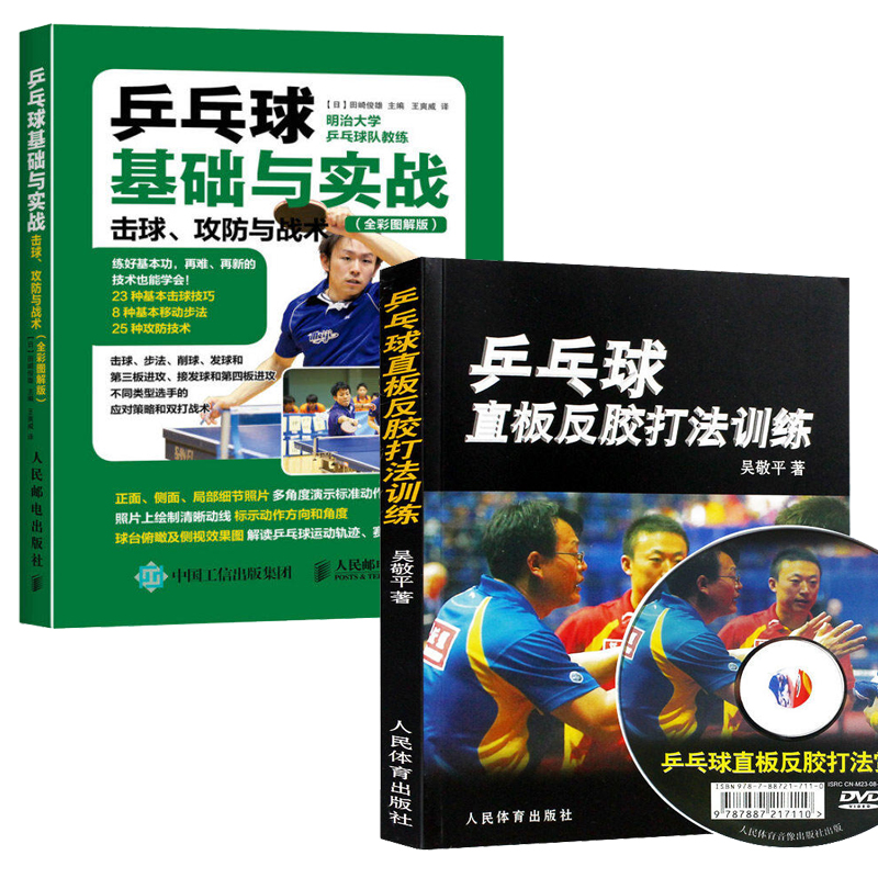 乒乓球基礎與實戰 擊球 攻防與戰術 +乒乓球直板反膠打法訓練(共2冊)附贈DVD光盤視頻教學