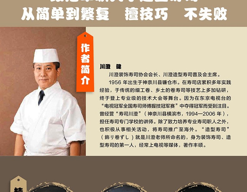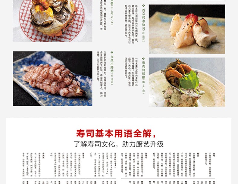壽司的製作在日料中是一個永恆的話題,常常能引起廣大食客的期待,本書中有35位壽司職人,或為大師,或為新銳,他們精心研製出的74種風格各異的魚貝壽司和160餘道日本料理,展示了日本壽司和料理的魅力,值得大家品嚐、學習和製作。書稿中保留了零星的日文,是日本壽司店的名稱,但不影響讀者閱讀和參考。本書稿由揚州大學旅遊烹飪學院李祥睿、南開大學外國語學院陳玉婷、揚州大學外國語學院梁晨翻譯,參與譯文資料蒐集、文字校對的有陳洪華、周倩、李佳琪、許志誠、徐子昂等。