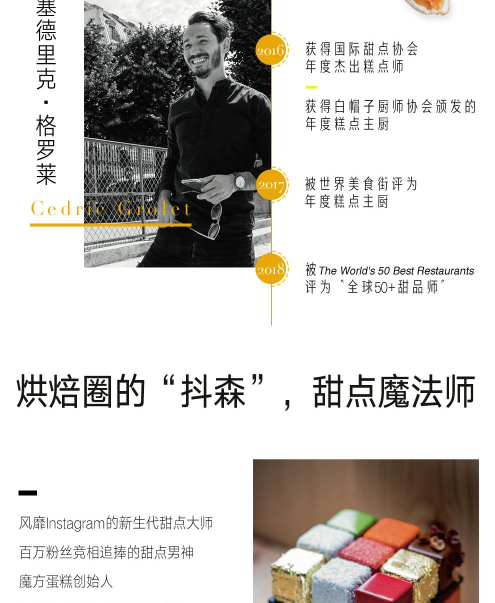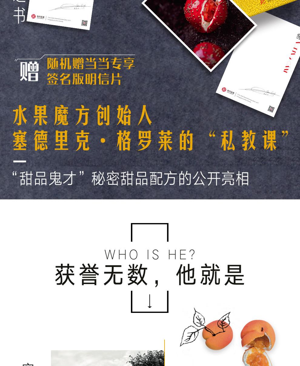 《水果進行曲 塞德里克·格羅萊的甜品創意法》作者塞德里克·格羅萊畢業於法國的甜點學校ENSP,現在是巴黎米其林三星餐廳Le Meurice的甜品主廚。此外,他在2016年被國際甜品協會評為年度傑出糕點師。作者獨創的仿真水果甜點,不僅外觀上完美復刻了水果的外形,在口味上通過對各種食材和香料的調味,襯托和美化了水果的特點,將法式甜品推上新的高峰。