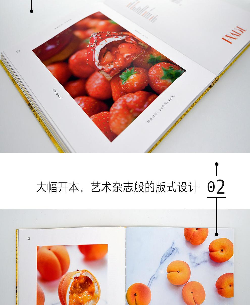 《水果進行曲 塞德里克·格羅萊的甜品創意法》中的“現代”系列甜品從大自然汲取靈感,避繁就簡,讓水果甜品的味道和質地達到了完美的契合。作者塞德里克將水果作為甜品創作的中心,這種甜品理念開創了法式創意甜點的新世界。這是一個方向性的徹底轉變,定義了全新的甜品製作方式。