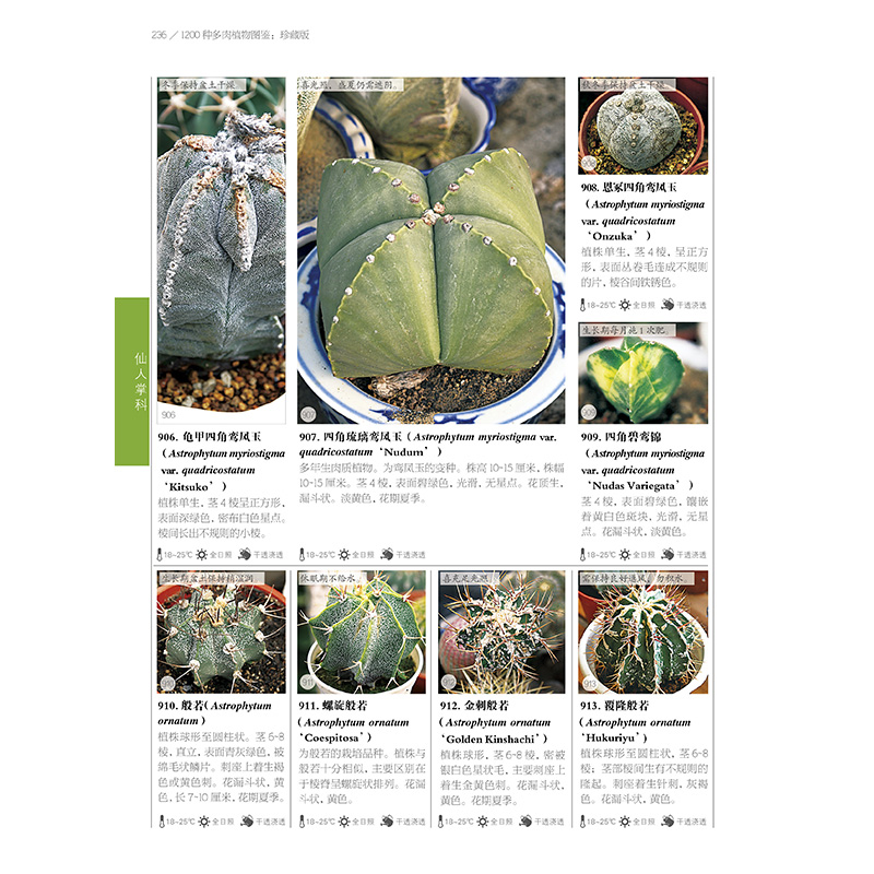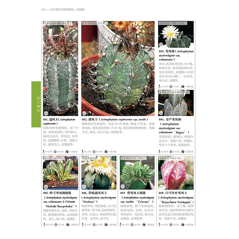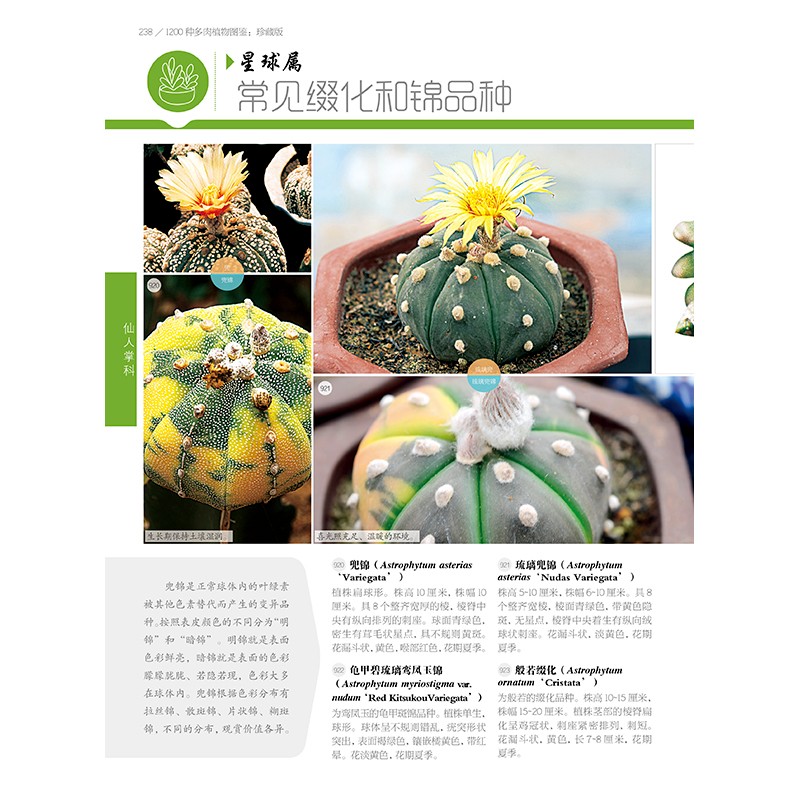 本書是一本珍藏版的植物圖鑑,其中共收錄1200種多肉植物,匯聚27科,167屬,不僅有常見品種,更有各個科屬多肉難得一見的錦、綴化品種,讓讀者可以大飽眼福。