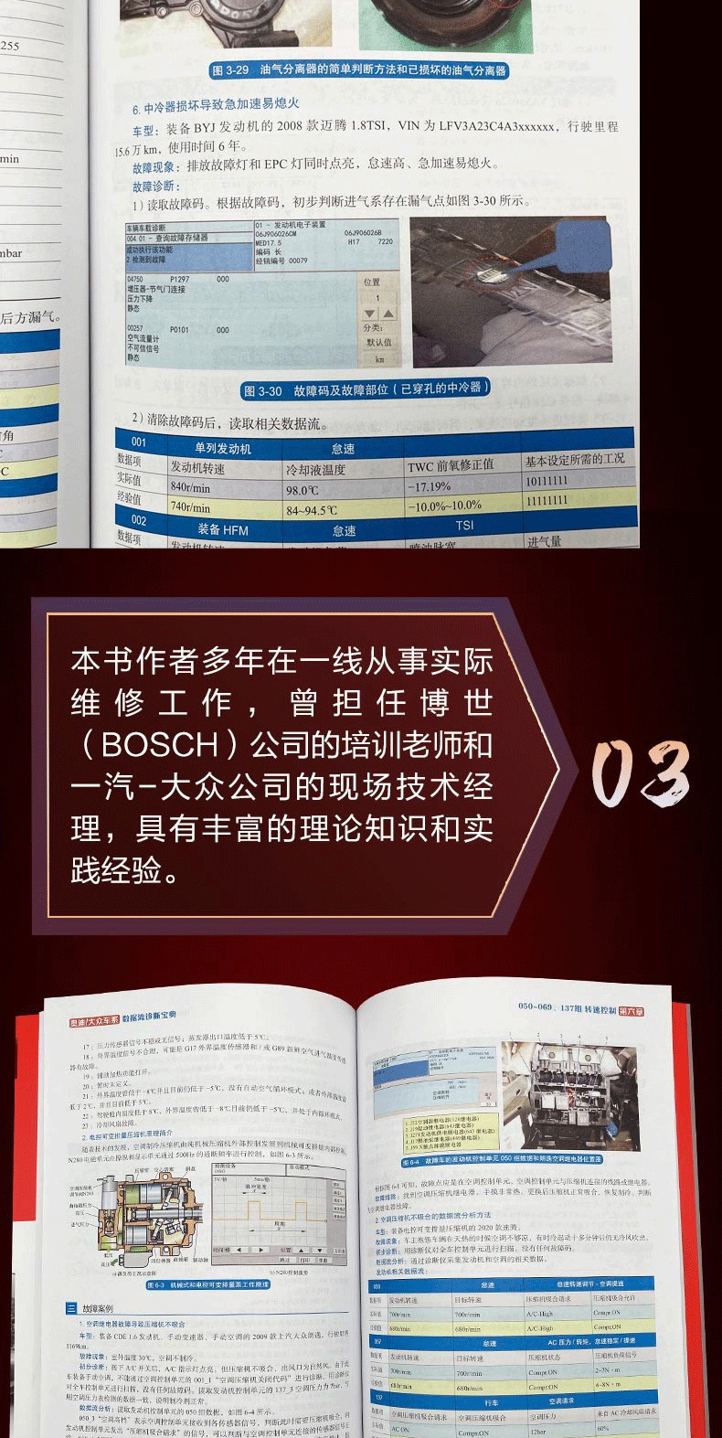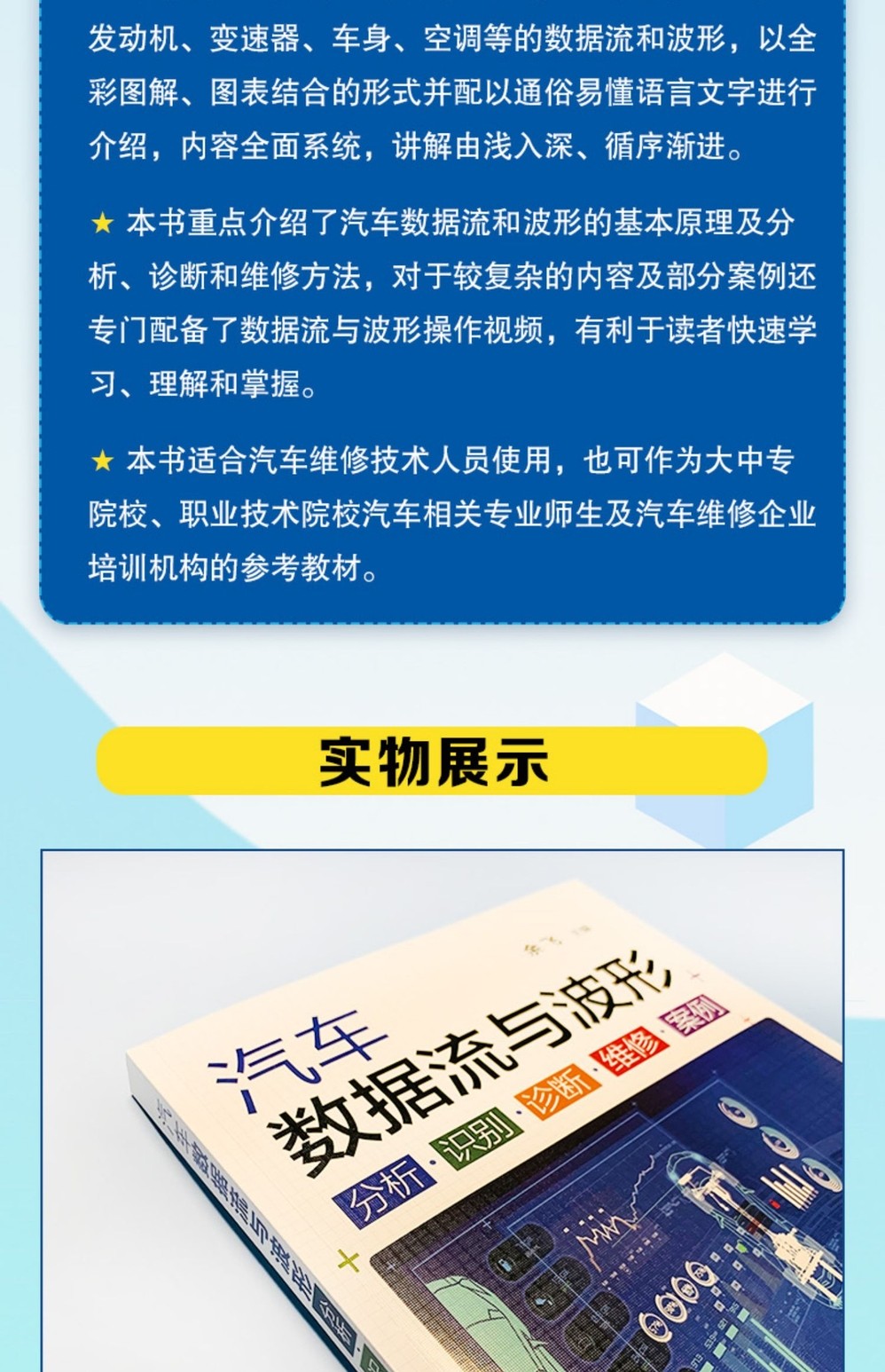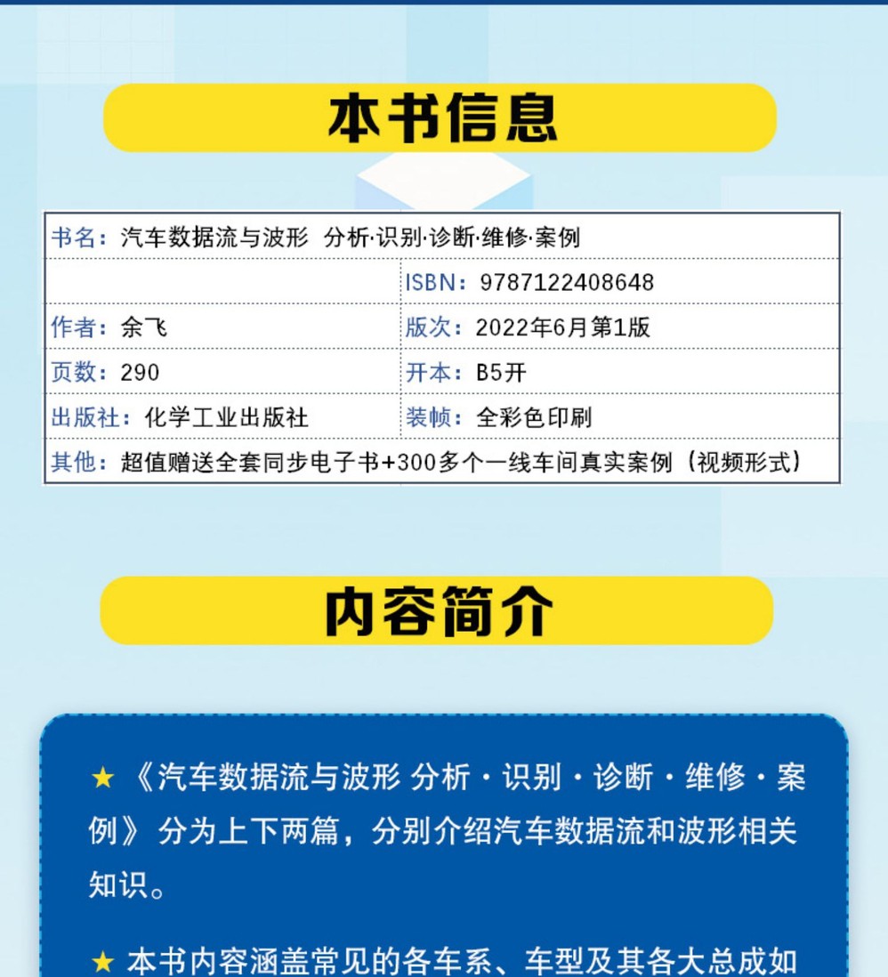本書內容涵蓋常見的各車系、車型及其各大總成如發動機、變速箱、車身、空調等的數據流和波形,以全彩圖解、圖表結合的形式並配以通俗易懂的文字進行 介紹,內容全面系統,講解由淺入深、循序漸進。