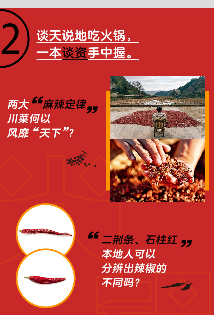 麻辣火鍋發展到今天,也面臨各種挑戰,如老油傳統與味道清薄的矛盾、精工湯底與繁雜蘸碟的衝突、麻辣程度與鮮香本色的不合、綠色飲食與化學食材的抵觸、公共環境與喧囂就餐氛圍的取捨等,這都需要對麻辣火鍋及文化做更深入的分析和總結。那麼,“地道風物”團隊推出的這本《火鍋》,對於川渝火鍋的正本清源和理清麻辣與川渝、川味的關係就十分必要了。