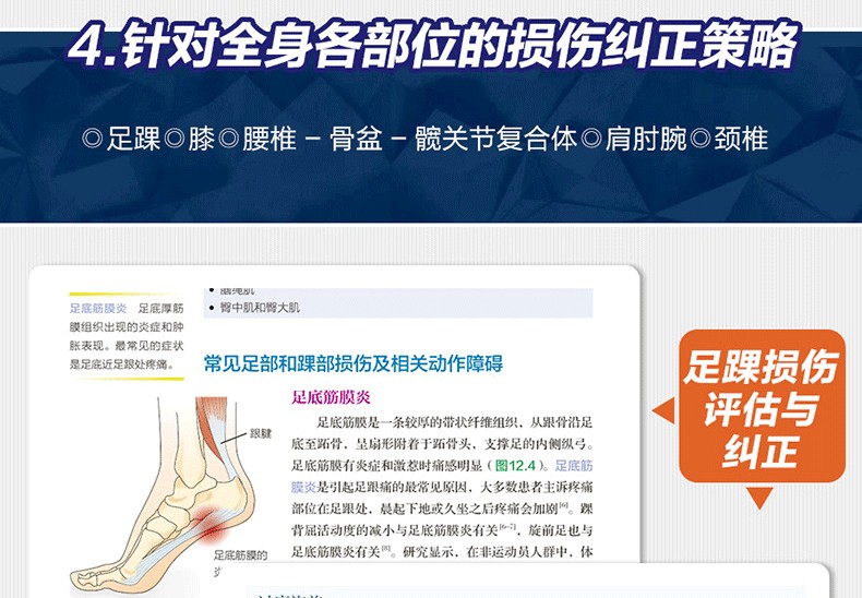 高清彩圖與文字描述相結合,展示針對身體各部位的評估及糾正性訓練技術。