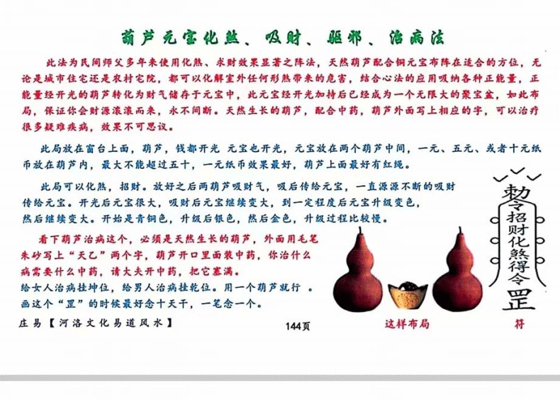 葫蘆化寶煞、吸財、驅邪、治病法