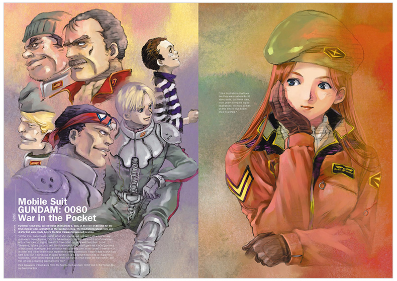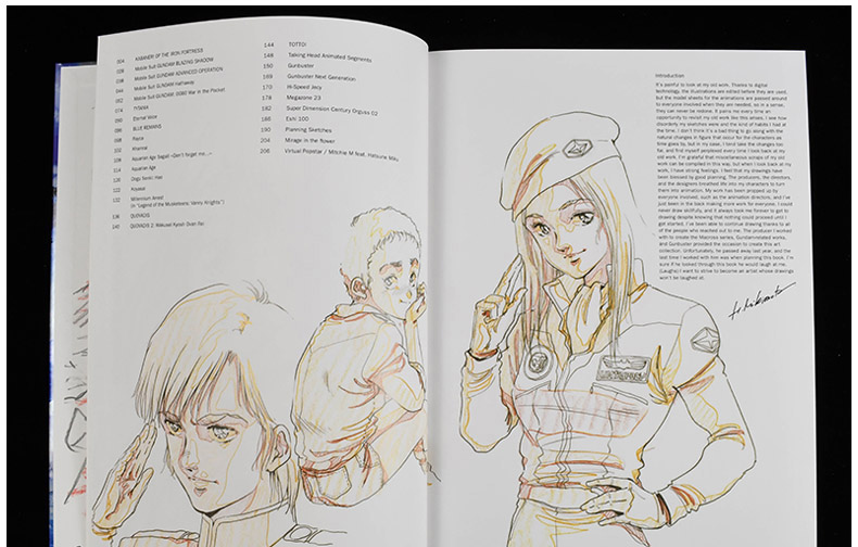 本書詳細介紹了美樹本晴彥的創作歷程,從《城堡內的廢墟》到《機動戰士高達0080:口袋裡的戰爭》《GunBuster》《機動戰士鋼彈:閃光的哈薩維》等。書中也收錄了美樹本晴彥對一些人物設計的註解,可以幫助讀者更好地理解他的設計過程。