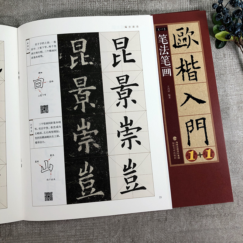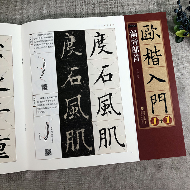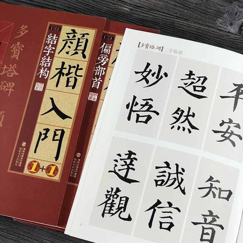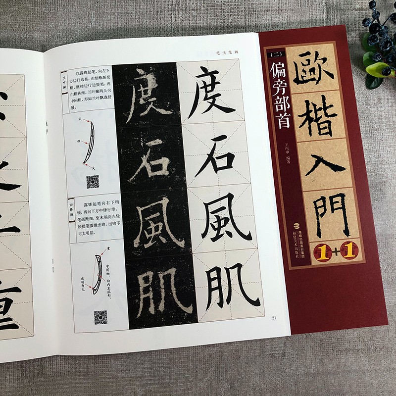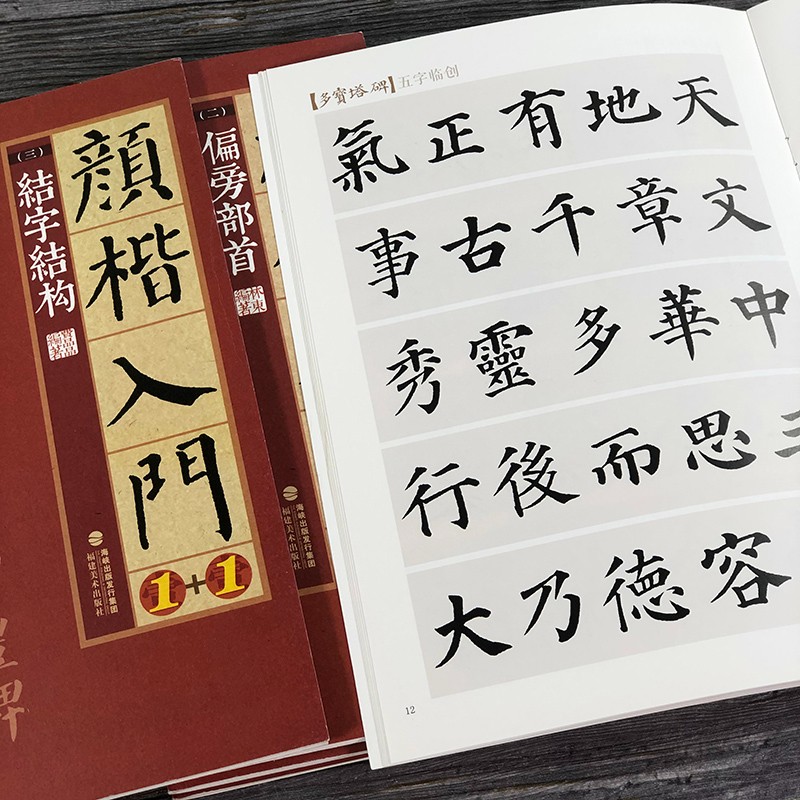 《顏楷入門1+1(二):偏旁部首》中的顏氏楷書是法度森嚴的典範,是眾多書法入門者的首選,在對顏楷的筆法筆劃、偏旁構件、結字規律和變化方式進行學習之後,便可進行集字練習等。 《顏楷入門1+1(二):偏旁部首》將《多寶塔碑》和《顏勤禮碑》的字例進行橫批、對聯、中堂、斗方等多種形式的組合,為習書者提供了學習的樣本,為其日後的楷書創作提供了方向。