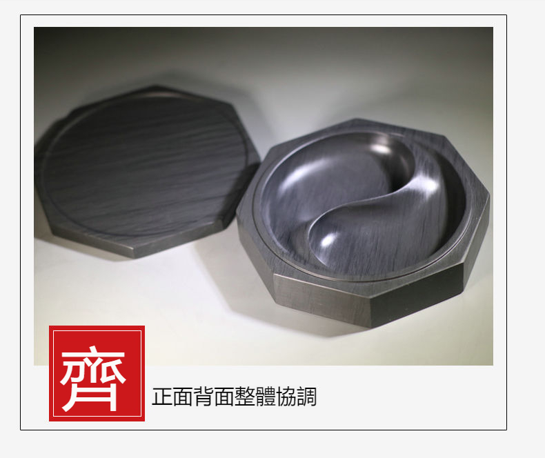 歙硯的製作材料被稱為歙石或歙硯石,一般需要5-10億年的地質變化才能形成,其中最適合製硯的是輕度千枚岩化的板岩 [1] 。其主要礦物成分為絹雲母、石英、黃鐵礦、磁黃鐵礦、褐鐵礦、炭質等,粒度0.001~0.005mm,比重2.81~2.94,主要硯鋒為片狀硯鋒。歙硯石的花紋結構十分突出,分為魚子紋、羅紋、金暈紋、眉紋、刷絲紋等類型。由於其礦物粒度細,微粒石英分佈均勻,故有發墨益毫、滑不拒筆、澀不滯筆的效果,受到歷代書法家的稱讚。造型渾樸,浮雕、淺浮雕、半圓雕等手法是歙硯台的工藝風格和特點。