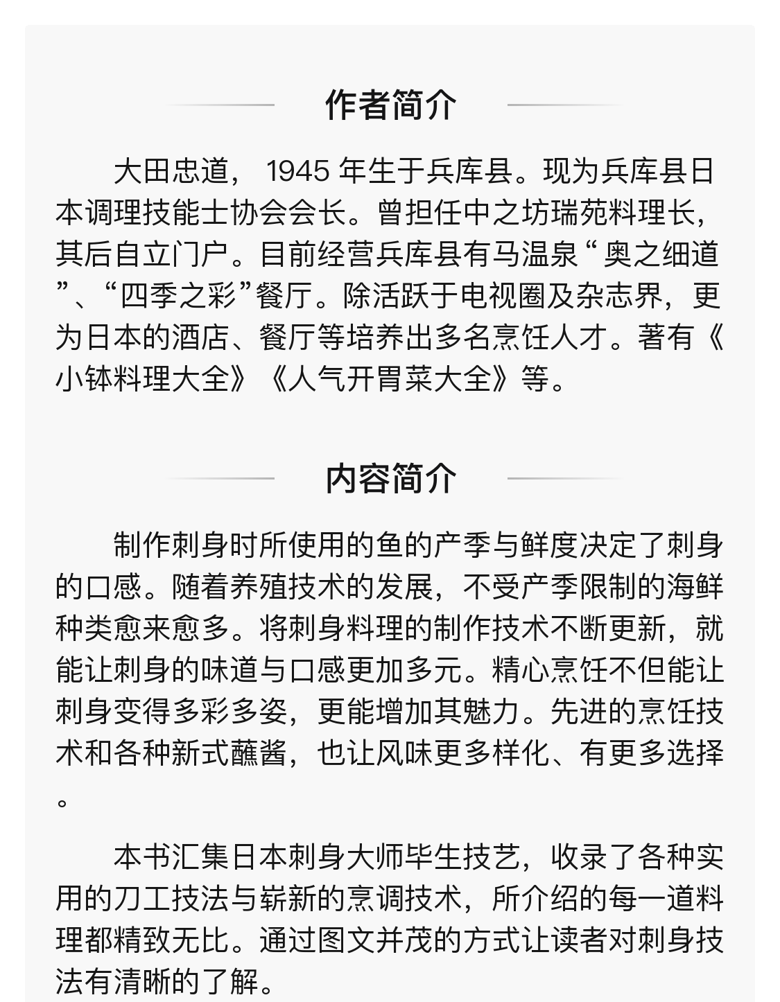 壽司用的食材,一定要生吃才美味嗎?比目魚這麼貴,哪部分最好吃?什麼季節的金槍魚最好吃?研究壽司及海產30餘年的藤原昌高,精選200種美味壽司食材,逐一解讀時令、分佈、烹飪方法及食材背後的故事。紅肉魚、白肉魚、蝦蟹、亮皮魚等分類展示,每種食材項下包括壽司圖片、魚(蝦、蟹、貝)圖片、棲息地、美味季節、名字來歷、其他烹飪建議等。更有易混淆的海鮮品種區分訣竅,看清楚再選,就這麼簡單!