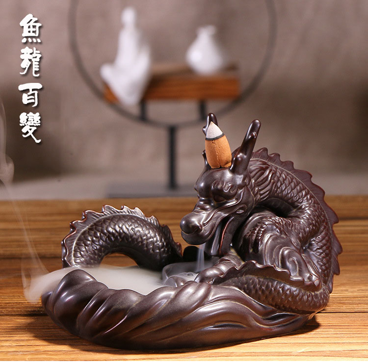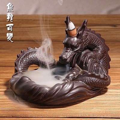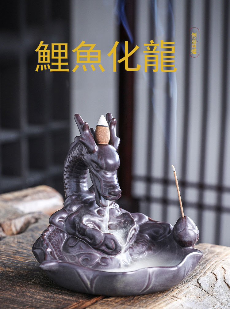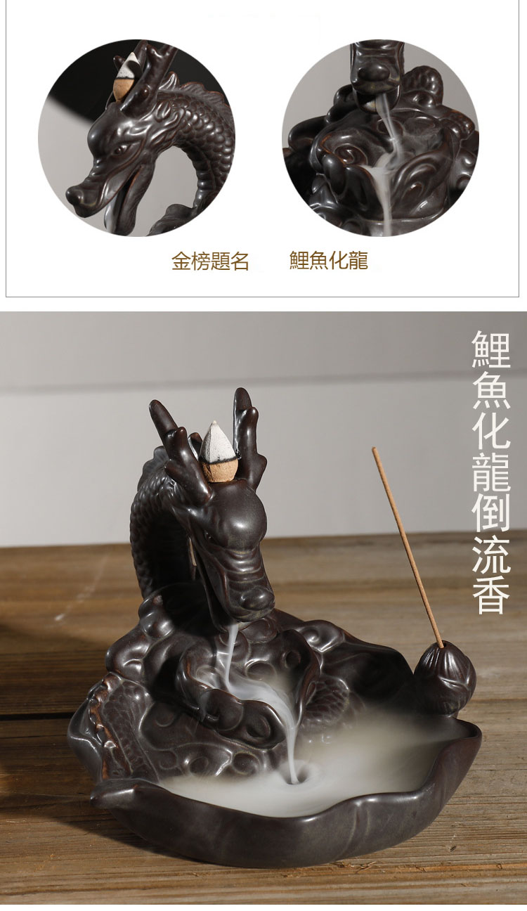 回流香爐倒流 鯉魚化龍 魚龍百變 家具擺件