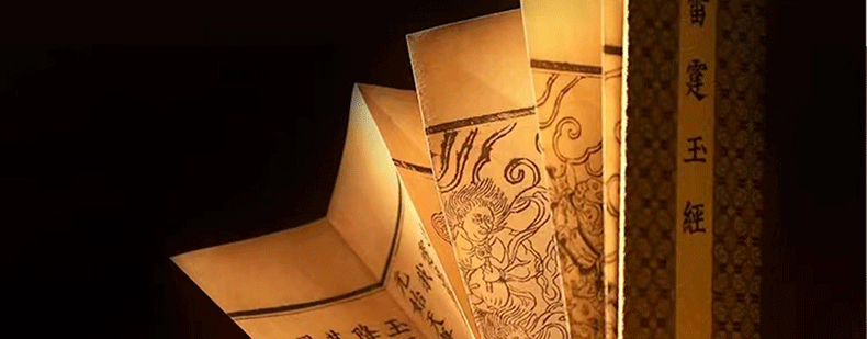 雷霆玉經 《無上九霄玉清大梵紫微玄都雷霆玉經》繁體豎排 經折裝一函一冊(明)朱真泓 本經卷端之雷部諸眾 神態生動,線條流暢,經內文字渾元精整
