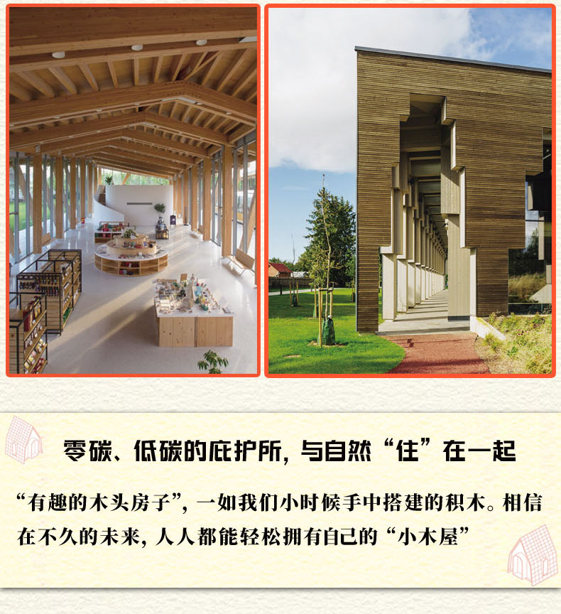 近年來,生活在「鋼筋水 泥森林」的都會人,開始對 充滿原生態的木製建築心向 往之。森林樹屋,木屋住宅,節能辦公室,鄉村車站, 地標塔樓,仿生木房子,數字切割的未來木屋&不間斷地出現,甚至能代表建築前沿技術的奧運會場館設計,也開始傾向於木結構的建築。這些木屋或大或小,精巧、有趣,是建造結構陣地的實驗室,是生活返璞歸真的試煉場,是節能減排的先鋒營, 是“有趣的木頭房子”,一如我們小時候手中搭建的積木。