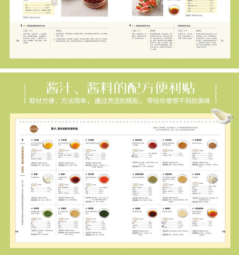 201種醬料調配,根據各國料理特點,按照材料和調製方法清晰分類,方便查找。與書中醬汁完美搭配的201種菜品,製作步驟清楚,是餐廳製作人氣醬汁料理的不錯參考。