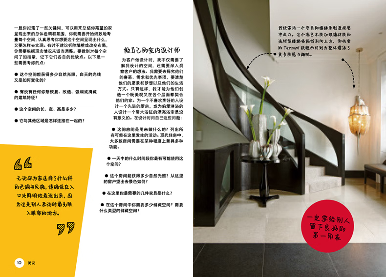 搭配著大量令人驚嘆的攝影作品,馬特向我們講述了那些擁有非凡設計的生活空間及其同樣不凡的房主的故事,並深刻詮釋瞭如何將空間、光線、材料、自然和裝飾這五大要素應用於房屋設計和室內空間。設計對於房屋和居住者的意義是什麼?透過設計,我們可以找到自己zhen正喜歡的風格,找到燈光、顏色、材質的獨特搭配,房屋設計才會展現出持久的魅力,並成為獨屬於自己的wan美之家。這樣,我們才能zhen正在家中體會精神的愉悅。