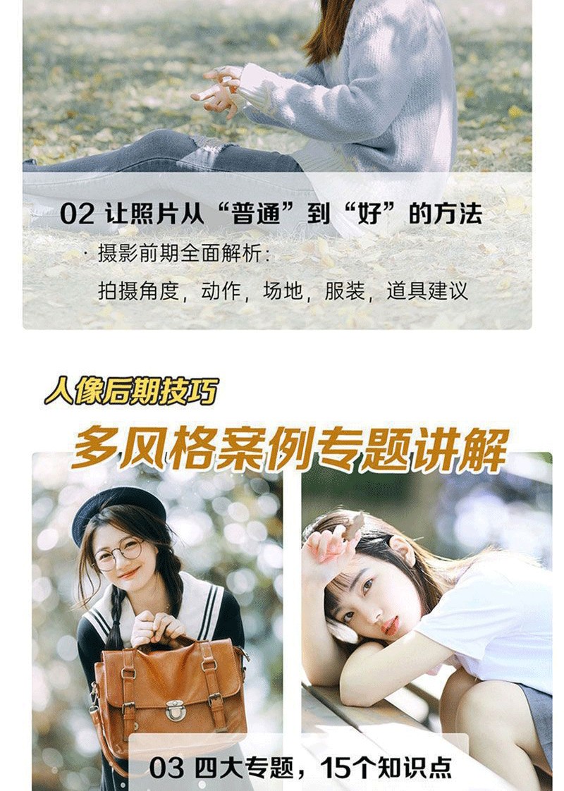日系清新人像攝影技法與後期+文藝風寫真技法與後期+少女進行時:人像攝影實戰案例與後期 (共3冊)
