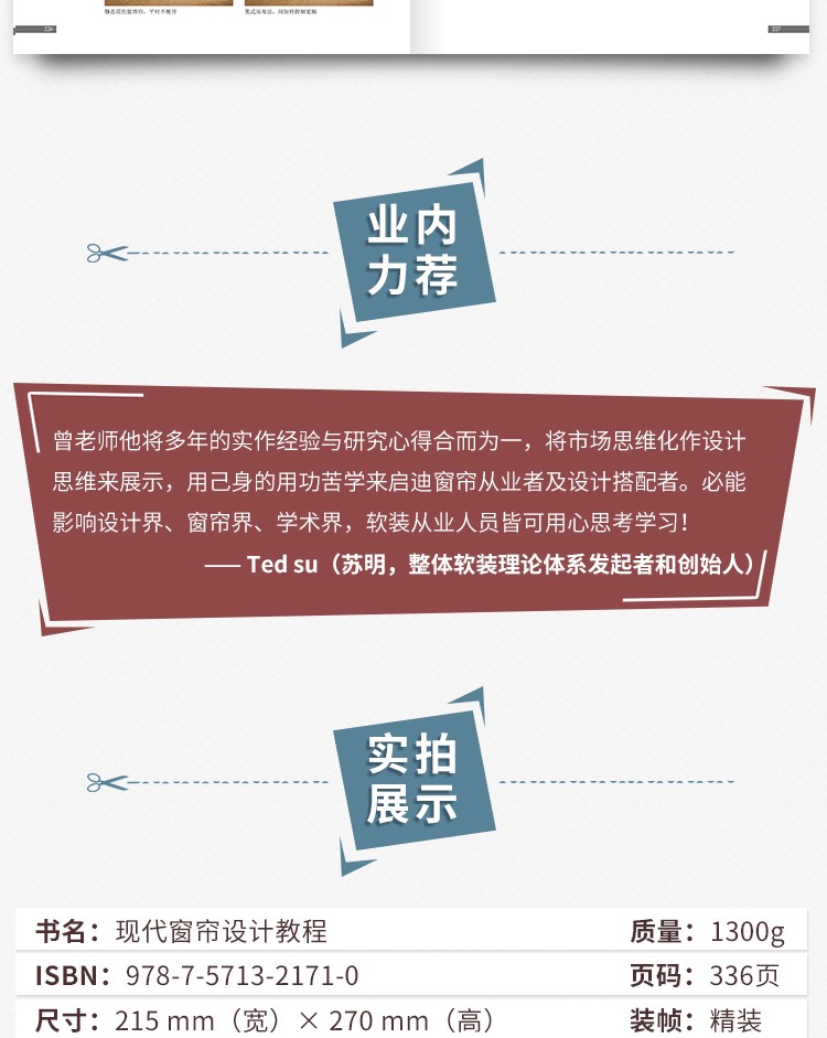 本書是作者20多年研究國外窗簾設計的經驗總結,揭秘“現代窗簾”的思想及內涵,系統闡述作者對現代窗簾設計全方位思考,全面剖析60多種窗簾設計與陳設方法,1000多張專業設計彩插揭示現代窗簾設計精華。