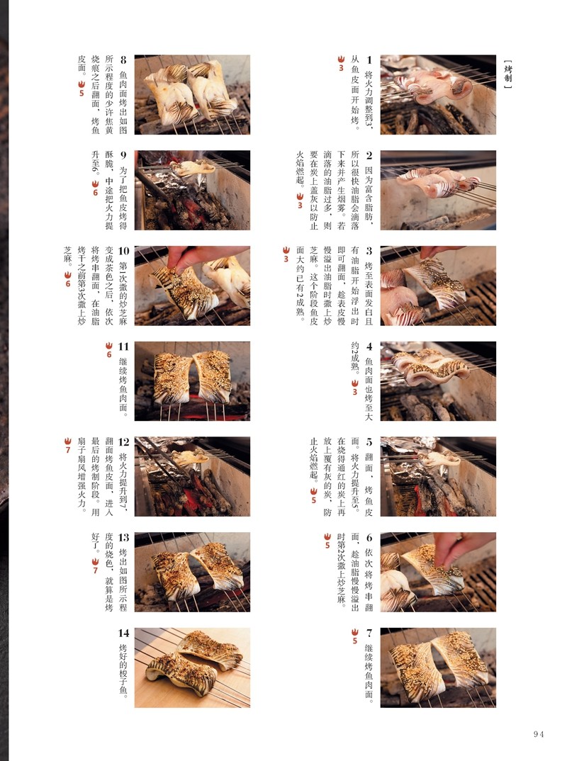 囊括海鮮、肉類和蔬菜等的50道日式烤物,均以一步一圖的形式詳細講解食材的準備與處理、穿串的形式及技巧、炭火火力的調控、烤醬的製作與刷塗、烤物熟度的判斷及掌控等炭火燒烤的關鍵技術,同時還設有燒烤流程的重點概要和火力大小的數字提示,使新手也能輕鬆學會“如何做”。