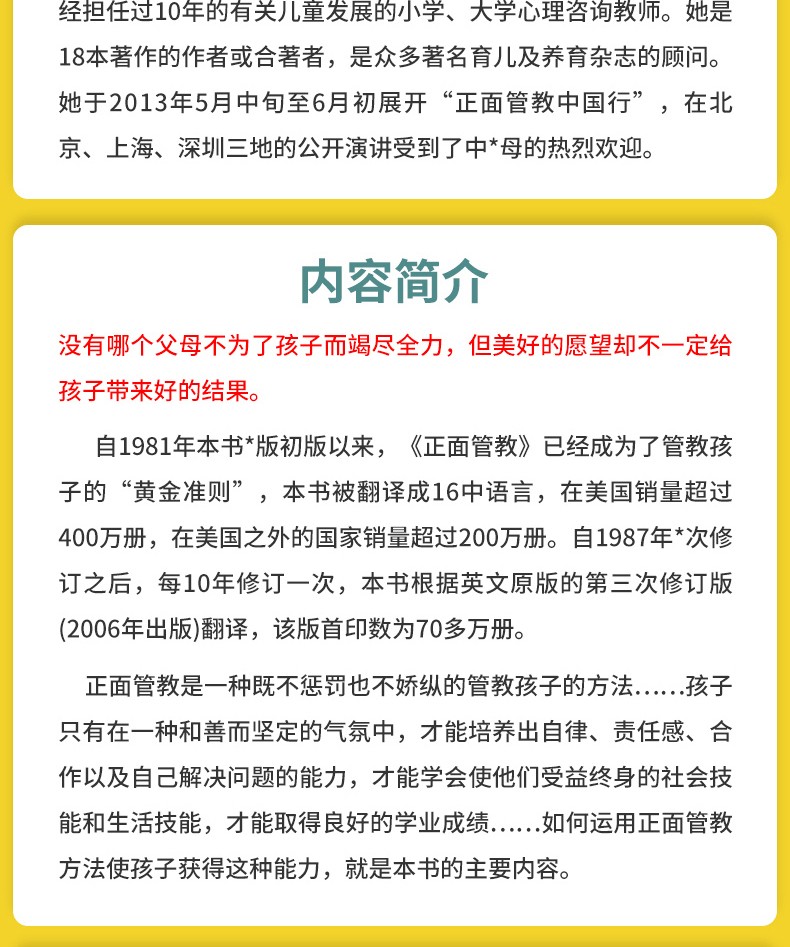 3.自1981年本書第一版出版以來,《正面管教》已成為管教孩子的“黃金準則”
