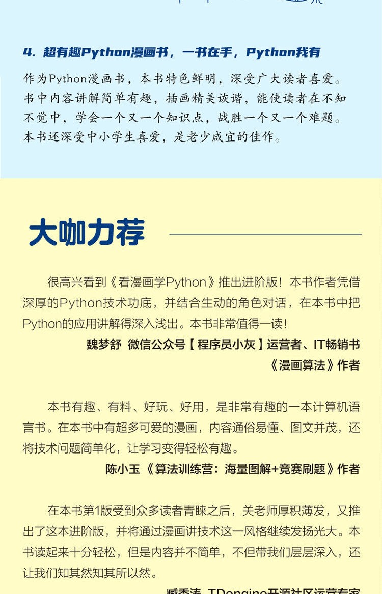 "看漫畫學Python,有趣、簡單! 提供配套視頻、定期答疑 小灰、大鬍子、臧秀濤等力贊! 關東昇、趙大羽新作"