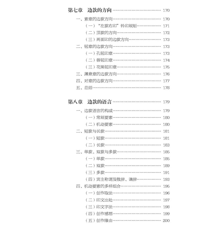 《單刀楷書邊款刻法與創作》不僅是一本“邊款字帖”,還是一本專業的邊款創作指南,書的後四章分別講述邊款的章法與風格、邊款的方向、邊款的語言,以及名家邊款欣賞等內容。
