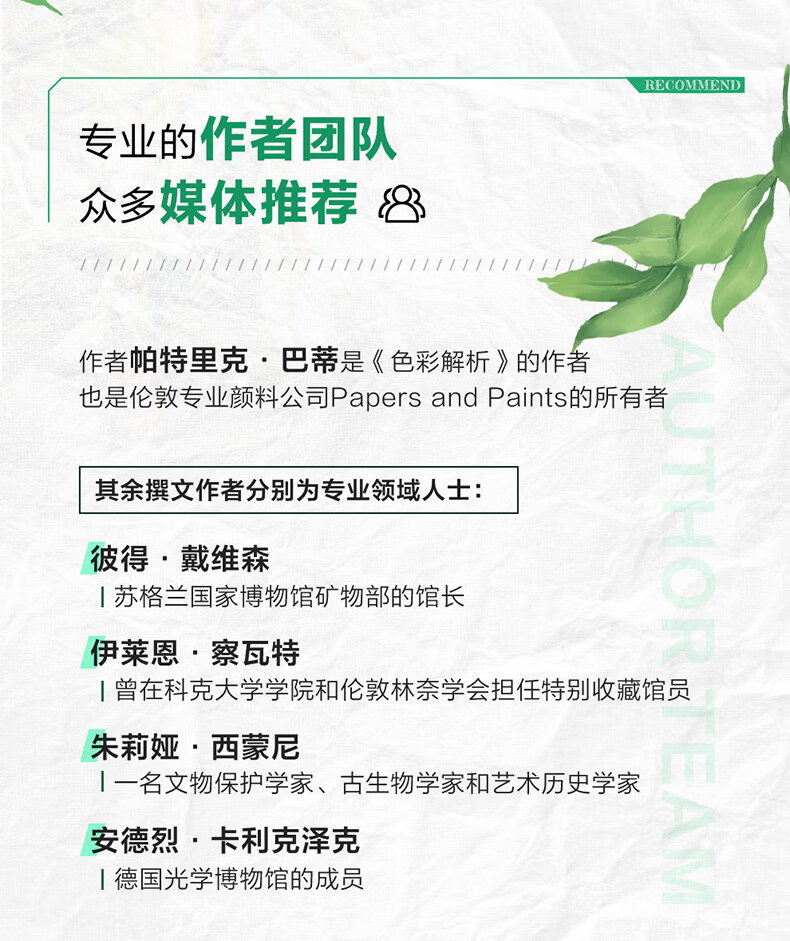 帕特里克·巴蒂是《色彩解析》(華中科技大學出版社,2018年出版)一書的作者,也是倫敦專業顏料公司Papers and Paints的所有者。他經營著一家為歷史建築提供塗料和顏色建議的諮詢公司,一直以來與多樂士和小格林合作,為英國的遺產研發出一系列傳統塗料顏色。