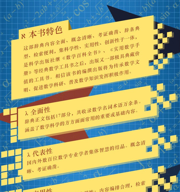 可謂現代數學基礎內容的一個縮影,它由國際知名數學家親自編寫,內容豐富實用、專業可靠。 《數學指南:實用數學手冊》整個編寫體係與有別於市場上的其他同類書。具有許多鮮明的特點,例如:全面、實用的參考,滿足您數學方面的查考需求;全面反映由於計算機科學越來越廣泛地應用和現代計算機起著越來越大的作用而引起的大量新進展;強化了數學各個分支學科之間的緊密聯繫全面激發思想與方法,並強調數學在工程與自然科學方面的應用,傳達給讀者以數學的生動、現代概貌提供了大量的寶貴資料,涵蓋基本資料到高端內容。