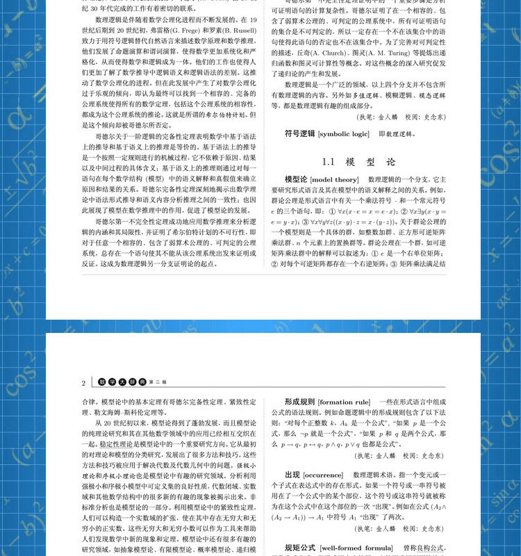 《數學名著譯叢:普林斯頓數學指南(第2卷)》是由Fields獎得主T。 Gowers主編、133位著名數學家共同參與撰寫的大型文集。全書由288篇長篇論文和短篇條目構成,目的是對20世紀最後一二十年純粹數學的發展給出一個概覽,以幫助青年數學家學習和研究其最活躍的部分,這些論文和條目都可以獨立閱讀。原書有八個部分,除第1部分是一個簡短的引論、第Ⅷ部分是全書的“終曲”以外,全書分為三大板塊,核心是第Ⅳ部分“數學的各個分支”,共26篇長文,介紹了20世紀最後一二十年純粹數學研究中最重要的成果和最活躍的領域,第Ⅲ部分“數學概念”和第V部分“定理與問題”都是為它服務的短條目,第二個板塊是數學的歷史,由第Ⅱ部分“現代數學的起源”f共7篇長文)和第Ⅵ部分“數學家傳記”(96位數學家的短篇傳記)組成,第三個板塊是數學的應用,即第Ⅶ部分“數學的影響”(14篇長文章)。作為全書“終曲”的第Ⅷ部分“結束語:一些看法”則是對青年數學家的建議等7篇文章。