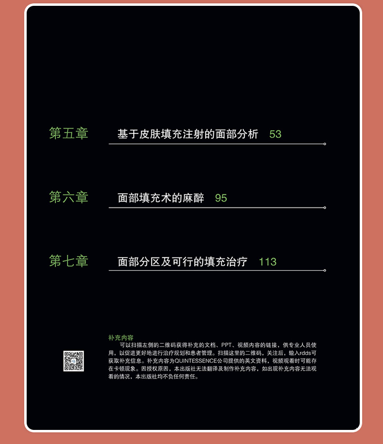 前四章主要講述了常規的面部解剖和皮膚填充劑的發展歷史及特點分析、