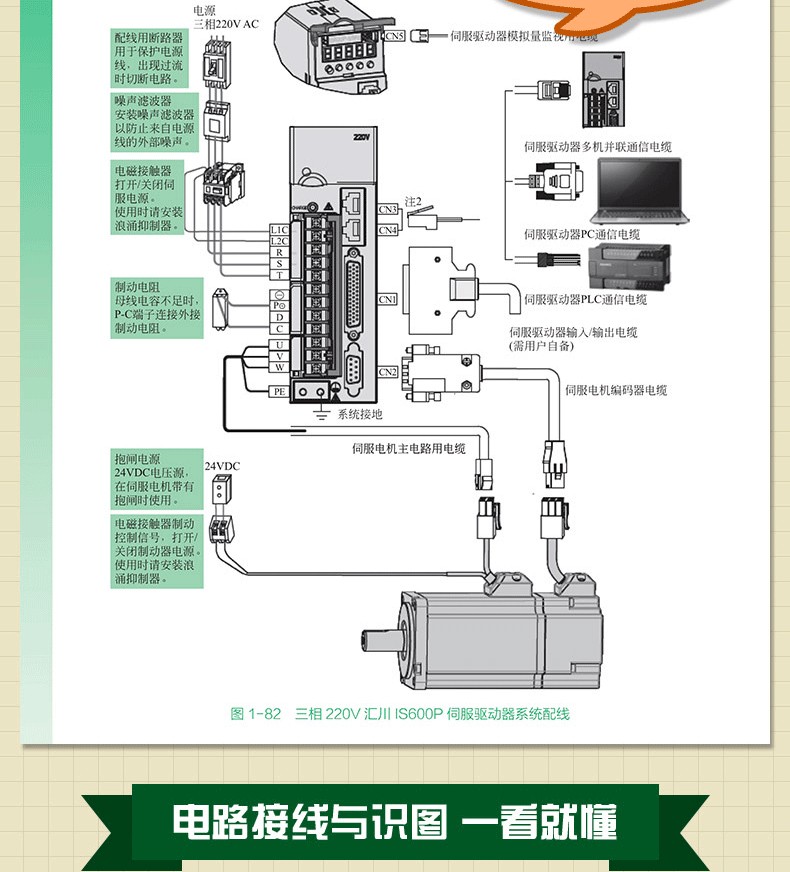《伺服控制系統與PLC、變頻器、觸摸屏應用技術》一書全面介紹了伺服控制系統、PLC、變頻器、觸摸屏實現電氣控制的全部基礎知識與控制應用技術。書中既有基本電路識讀講解,又有電氣控制與原理、組裝調試、編程、檢修的步驟,同時兼顧智能控制新型電氣設備的應用,可供電氣控制技術人員、電工、電子技術人員全面學習。