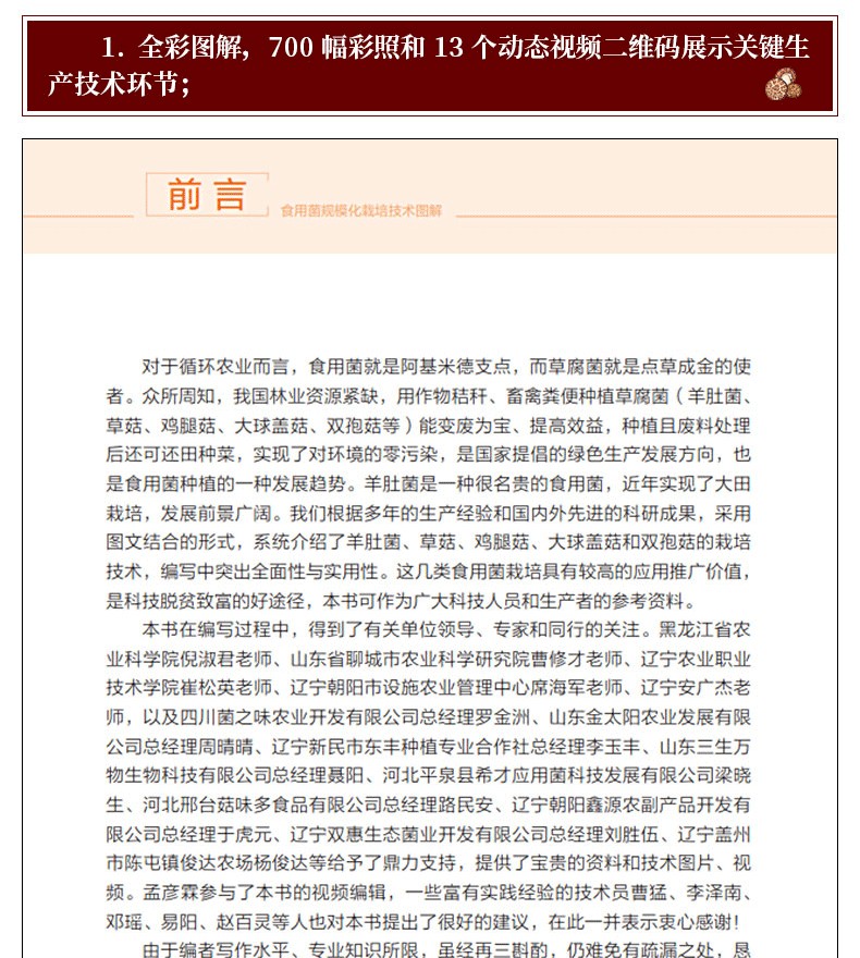 本書系統介紹了規模化種植羊肚菌、草菇、雞腿菇、大球蓋菇、雙孢菇五種食用菌的菌種選擇與製作、發菌管理、栽培管理、出菇管理、病蟲害防治、栽培常見問題及處理措施等,對整地、搭棚、播種、覆膜、養菌、催菇、採收、分級、保鮮、加工等工藝流程的技術要點作了詳細講解。本書圖文並茂,13個二維碼操作視頻和近700幅彩色照片為從事食用菌工作的農業推廣人員、科技人員以及食用菌企業和廣大食用菌種植戶在實際研究和生產過程提供指導和參考。