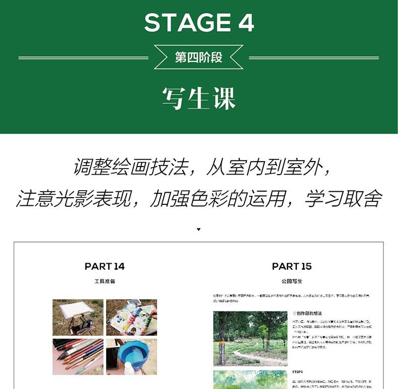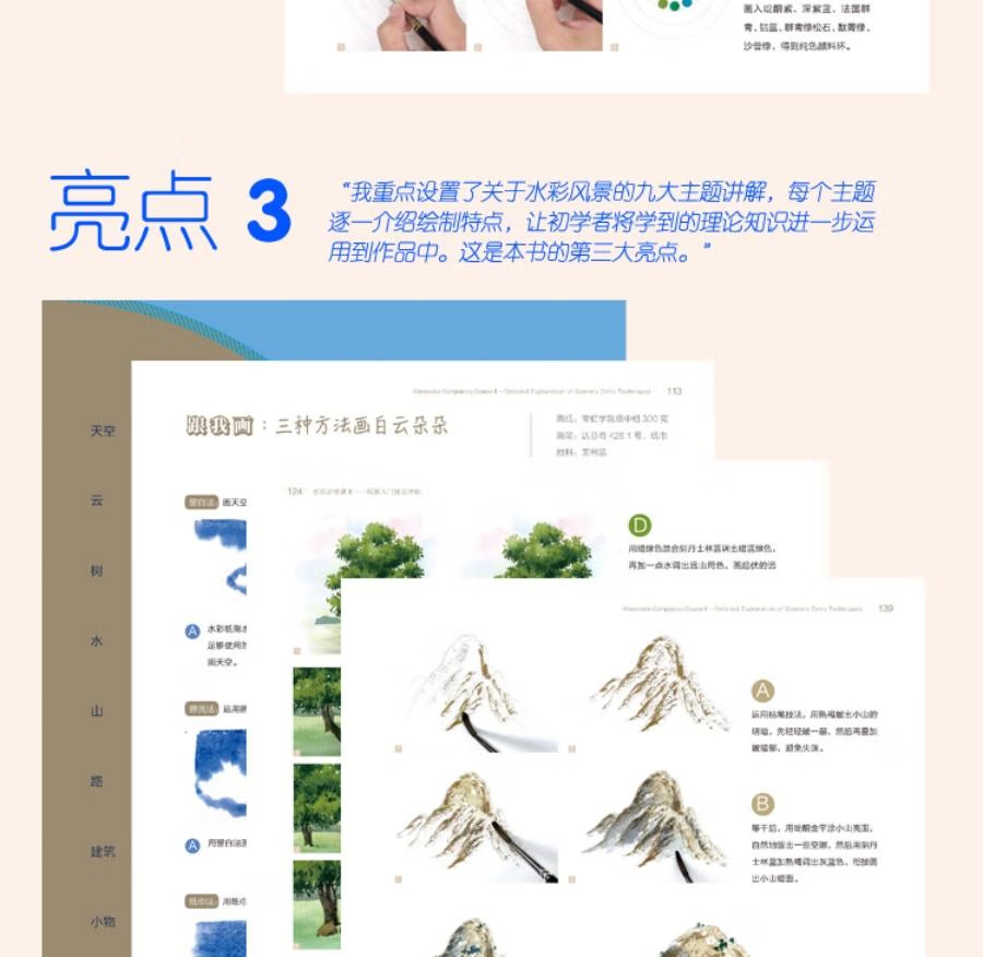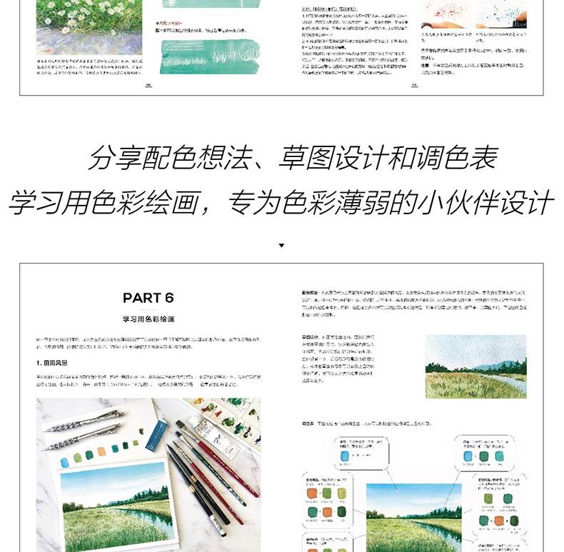 本書是水彩風景自學教學。在繪畫工具、技法、經驗上進行了全方位的深度剖析,是作者7年自學經驗的一個總結。書中用到了大量的案例和視頻教程,知識點很密集,按照自學的進程全書分成:基礎知識、進階技法、走進米蒂的水彩風景世界和寫生課四個不同的階段,用圖文結合的形式循序漸進地帶你走進水彩風景的世界,在講解技法的同時作者還分享了自己的自學經驗和心路歷程,更懂大家所能遇到的問題和瓶頸,是初學者的不二之選。