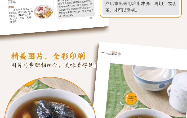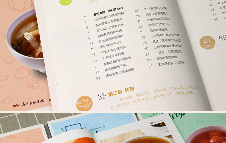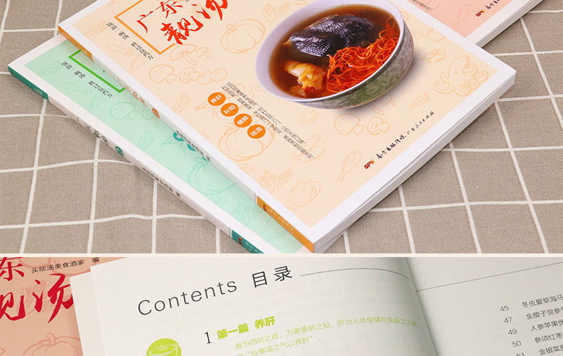 春回大地,在綿綿細雨的滋潤下,萬物生髮,人體的陽氣也向上向外宣發。中醫學認為,春是肝當令,養生宜養肝、補陽。同時,春天氣候變化較大,加之人體皮膚開始變得疏泄,對寒濕的抵禦能力有所減弱,因此,要慎避濕寒與風邪,養生須著重健脾、祛濕。 《廣東靚湯1》根據春季的氣候特點,為讀者推薦了養肝、補陽、健脾、祛濕四類適時湯品,並詳細講解了近百款湯品的製作方法、營養功效和烹飪竅門。
