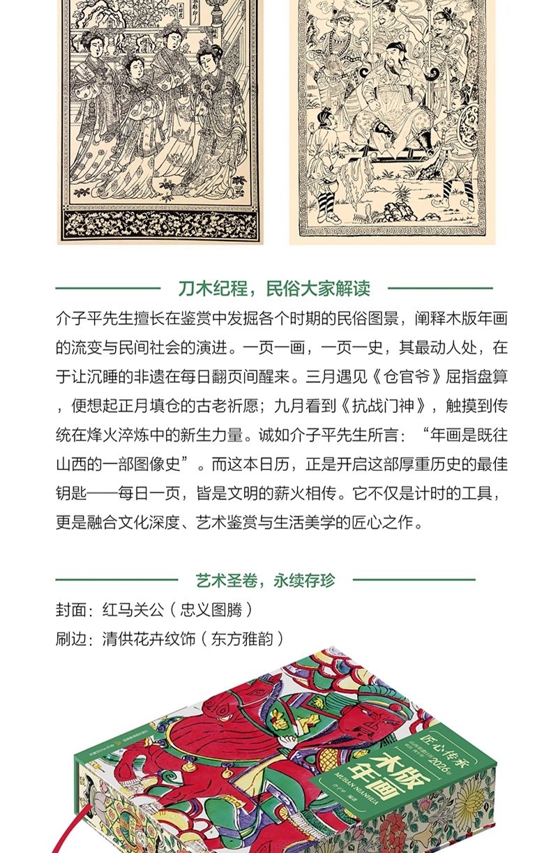 匠心傳承 2026山西非遺 木版年畫日曆【刷邊特裝版】 非遺技藝 365幅晉地年畫精粹 收錄金代至近代孤品 涵蓋門神戲劇民俗等年畫博