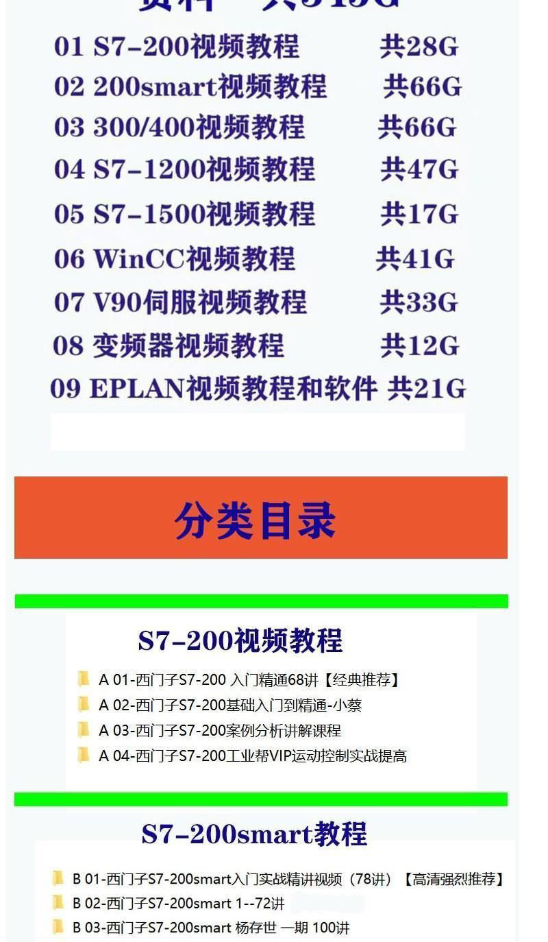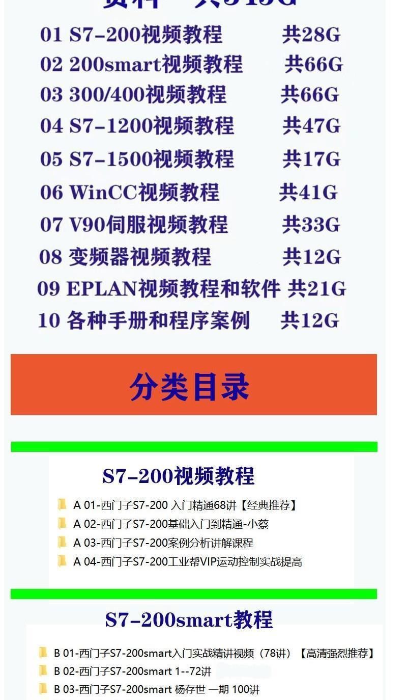 西門子PLC全套視頻教程 S7-200/300博途1200/1500 WINCC觸摸屏 仿真編程軟件全套視頻課程(320G 硬碟出貨 免下載 即插即看)