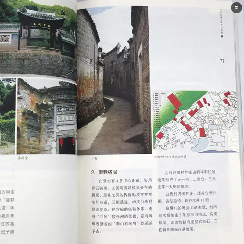 有些村鎮行會消逝。書中大量的實景照片和部分測繪圖,對於踏勘、辨別建築年代類別等專業讀者而言有很好的參考和借鑒作用,能夠根據不同城、鎮、村的具體情況制定相應的調查策略,準確地提取地方典型傳統元素。