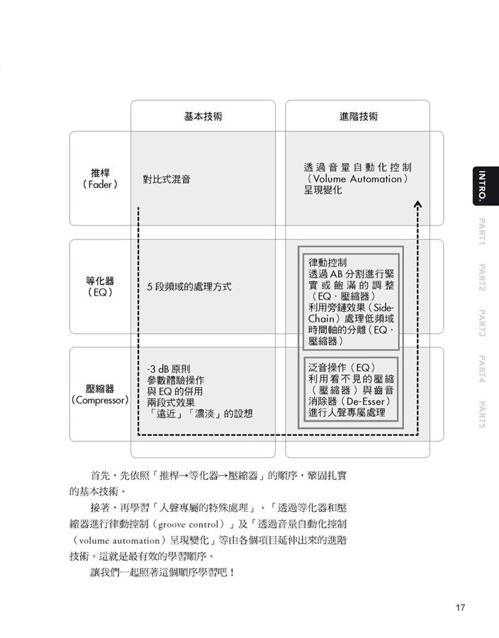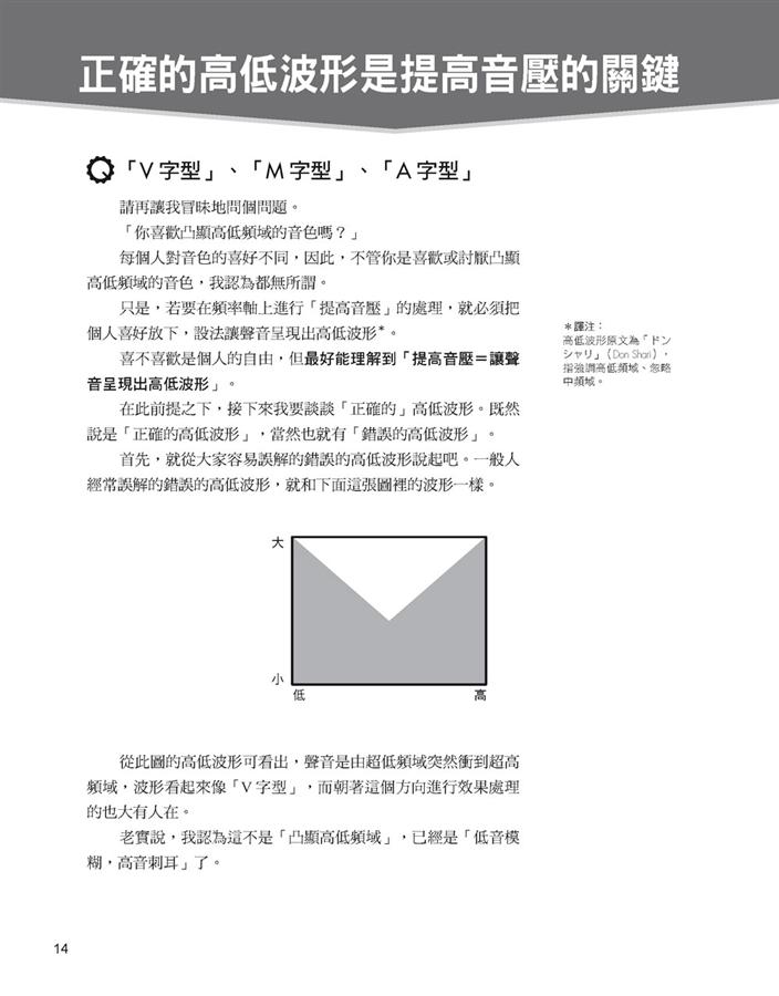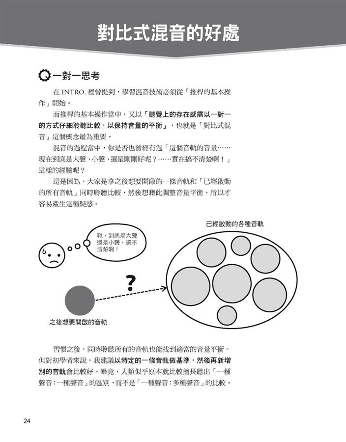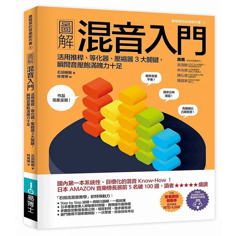 什麼是可提高音壓的正確高低波形?等化器(EQ)、壓縮器(Compressor)相關的各種參數數值有哪些基準可依循?現為日本專業音樂人、並創設人氣音樂講座公司的作者,將自身於混音世界反覆摸索後所獲得的經驗,濃縮成有系統的精華,規劃出一套最便捷有效的入門學習路徑。透過作者親切又清晰、如一對一授課般的解說,加上實際操作本書專屬的教學音檔,你將輕鬆又扎實地學會關鍵的基礎概念與技巧,讓自己的作品更加完美!