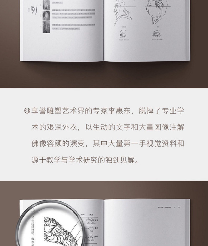 作者李惠東身為中國雕塑界專家,擁有紮實的學術背景和豐碩的教學實踐成果,《佛陀的容顏》以其獨到的學術見解、簡潔直觀的圖文解讀,向大眾普及佛像造像的容顏演變史,其中融合了豐富可信的史地、人文和佛像造像藝術知識。此外,本書的裝幀設計呈現也可謂獨具匠心。簡言之,這是一本兼具傳統文化藝術價值與美學價值的寶藏之書。
