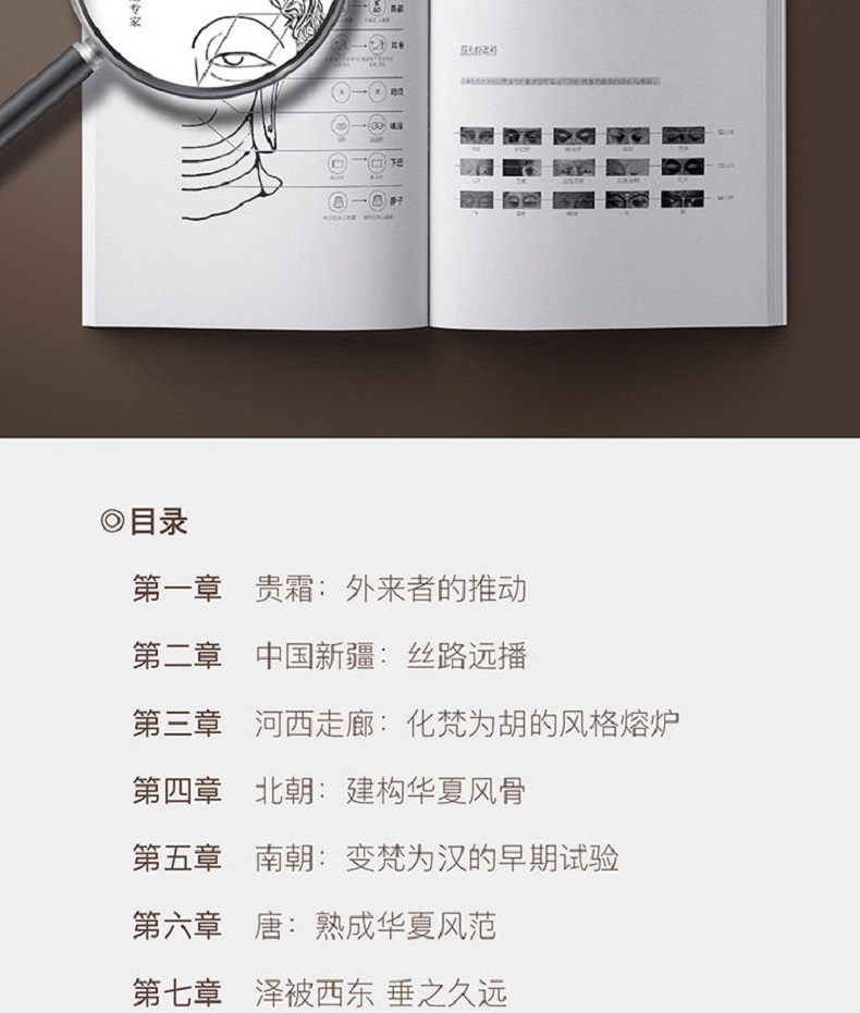 《中國造像之美:絲綢之路上的石窟藝術與文明流變》的主要內容是對中國古代隋朝以前的石窟造像藝術進行系統性的梳理與展示。 從佛教藝術初始,受希臘化影響的犍陀羅第一尊佛造像講起,一直到北朝晚期逐漸民族化的本土造像,覆蓋了從巴米揚到克孜爾,從莫高窟到麥積山,從雲岡到龍門,從響堂山到龍興寺的石窟造像藝術脈絡,長達五百年的時間跨度。本書精選了國內石窟寺及博物館收藏的百餘尊造像精品,透過圖片和文字的雙重呈現,使讀者能夠深入了解和欣賞這些珍貴的佛教藝術遺產。 這本書特邀國內佛造像藝術研究的專家學者撰稿,從歷史、藝術、文化、哲學、鑑賞及朝代風格演變等多個角度,對石窟造像藝術在中國的傳播進行了全面而係統的梳理。這使得《中國造像之美:絲綢之路上的石窟藝術與文明流變》不僅具有極高的學術價值,同時也為一般讀者提供了一本通俗易懂、圖文並茂的造像藝術入門讀物。
