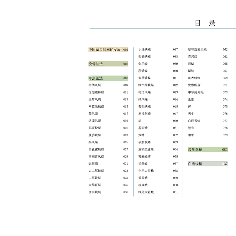 沒骨畫是中國傳統繪畫的一個門類,其技法簡單易學、畫面易出效果的特點,使得沒骨畫教程備受國畫初學者的青睞。 本書是針對國畫初學者所策劃的一本沒骨草蟲技法書,全書分為技法講解及教學課稿兩部分。 技法講解部分為沒骨畫相關技法以及30種常見草蟲和配景植物的畫法,以步驟的形式剖析草蟲的具體畫法,講解各類草蟲的結構造型、設色特點、構圖方式,每一 種類的草蟲講解都配有完整的影片教學。 且教學課稿部分做活頁處理,讓讀者學習、檢索、整理更方便。