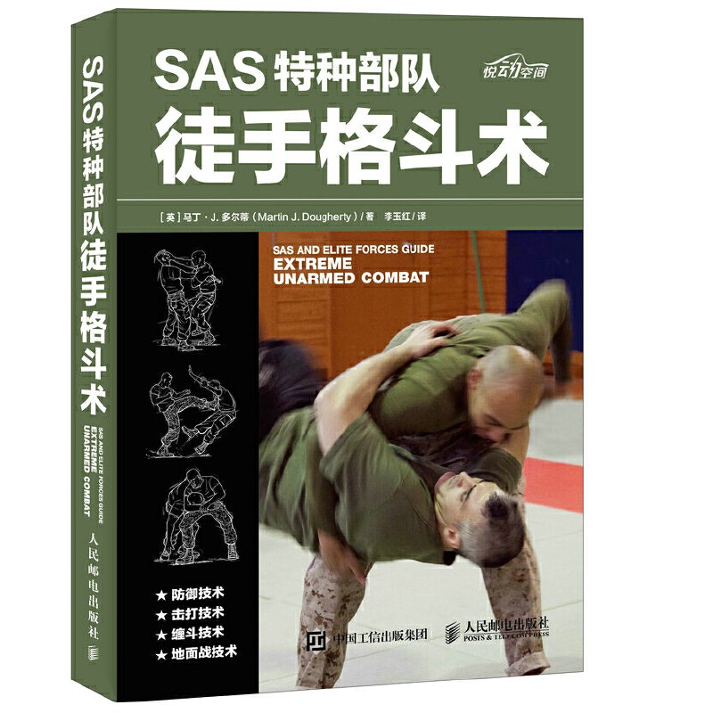 馬丁·J.多爾蒂著、李玉紅譯的《SAS特種部隊徒手格鬥術》這是一本綜合介紹徒手格鬥的接近手冊,內容源於英國特種空勤團(SAS)及其他精銳特種部隊的徒手格鬥術。全書共分三大部分,包括格鬥技術的綜合介紹、徒手格鬥技術動作應用以及徒手格鬥訓練等內容。書中從基礎的防禦、擊打、纏鬥、地面戰技術講起,詳細介紹了應對各種被動情況下的徒手格鬥技術,還給出了徒手格鬥的體能及實戰訓練方法等。本書內容全面,並以線條圖的形式描述動作及技術要領,真實可靠、易學易用。