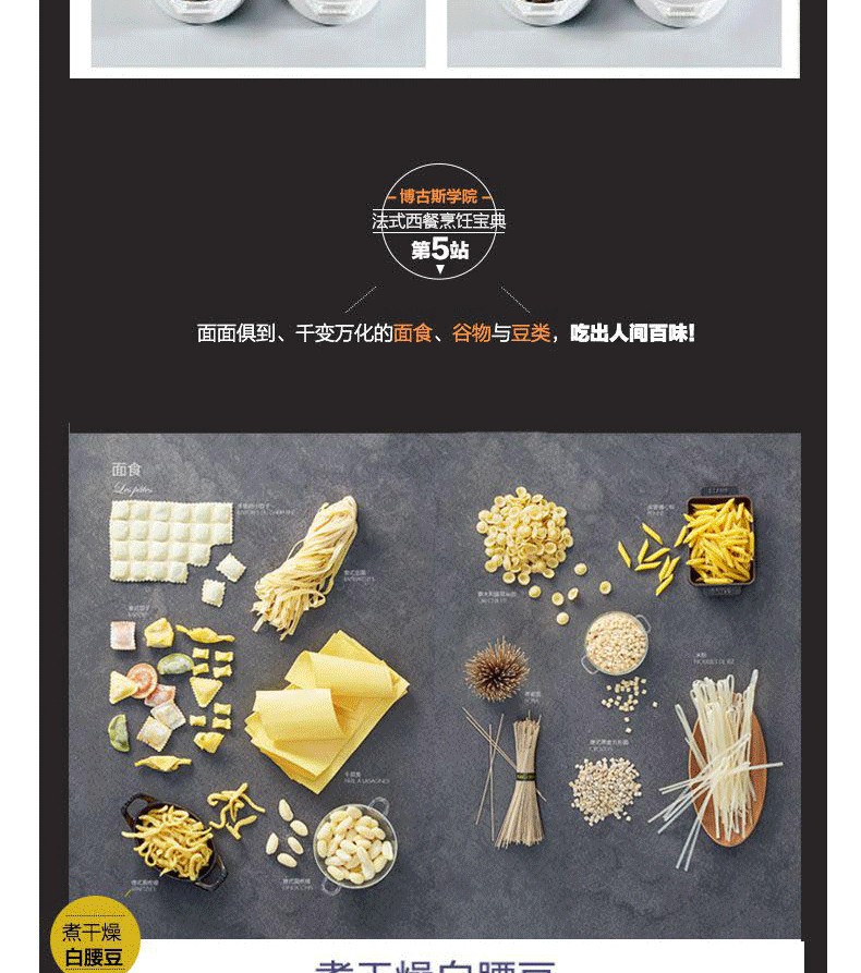 《博古斯學院法式西餐烹飪寶典》中約有70道食譜的展示,超過250種烹飪技巧的步驟說明,且全部按照食材種類詳細進行分類。 1990年,在法國當時的文化部部長傑克·朗(Jack Lang)的推動下創立了保羅·博古斯廚藝學院,他一心想將烹飪料理納入創意行業這一領域,令其變為“烹飪的藝術”,而包含豐富步驟圖的本書的出版,就是為了向這所屹立了26年之久的學院致敬。