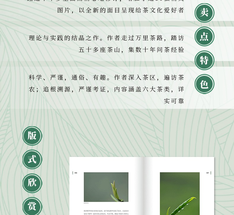 本書為作者數十年的茶山之行、問茶經驗和心得體會的集結之作。作者試圖結合茶山遊學,用一個理科生的思維和視角,把六大茶類的本質、與茶類起源的相互影響,認真地交代清楚。為此,作者重走茶區,遍訪茶農、茶人,嚴謹考證茶史、茶葉製作工藝、技術傳承、茶樹品種等等,力求從可靠文獻和證據鏈中,得出每一個所要表達的結論。讓自己的每一個觀點,得到可靠的技術與正確的理論支持。盡可能地讓每一張圖片與文字對應,可賞可讀,以圖釋文。