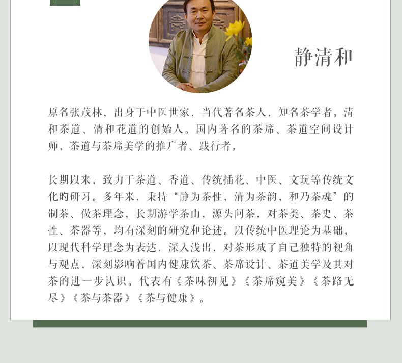 一杯茶,它並沒有特定的喝法,也沒有標準,因為每個人的喜好不同。但茶,它豐富的變化,確值得被分析與介紹。與身體生理對應的關係,值得更清晰地被呈現。茶,因為擁有自身的生命力,所以對它深度的探討,可以進行一輩子。一款茶,從採摘完成、製作保存,到開封呈現在茶桌前,這是茶的一場生命之旅。而當它進入到茶壺,準備註入熱水的那一刻,不是它生命的結束,而是延續。它所展開的,是一場人從味覺、身體感受到心靈層次的探索之旅;也是一場對於美學的學習之旅。味蕾上音符的跳動,口腔、鼻腔立體空間的穿梭,令人流連忘返。