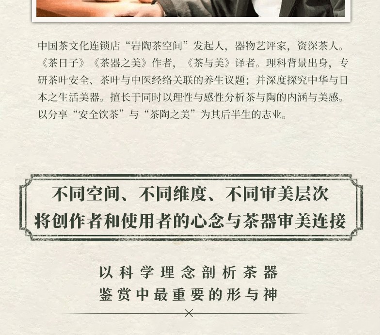 知名茶人靜清和老師茶器美學經典代表作 全面、精心修訂 新增100餘幅歷代茶器圖片 知茶識器入門基礎 追溯飲茶的起源,探索茶器的演變 深度解析飲茶方式與茶器審美的交互影響