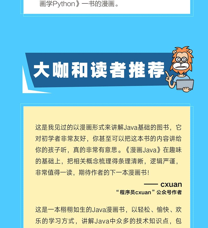 1.本書作者關東昇從事20多年Java編程工作,10多年的IT培訓工作,漫畫作者趙大羽是清華美院畢業的,繪畫功底很深,也從事了多年的用戶體驗培訓。 2.本書採用漫畫加圖解的方式,以輕鬆、愉快、歡樂的學習方式,講解Java中眾多的技術知識點。書中惟妙惟肖的漫畫也為每一個知識點的學習注入了有趣的靈魂,非常適合初學編程的小白。 3.《漫畫Java》在趣味的基礎上,把相關概念梳理得條理清晰,邏輯嚴謹。 4.讓讀者在看漫畫的過程中不知不覺地掌握Java語言,將復雜的技術問題通過漫畫形式講述給讀者